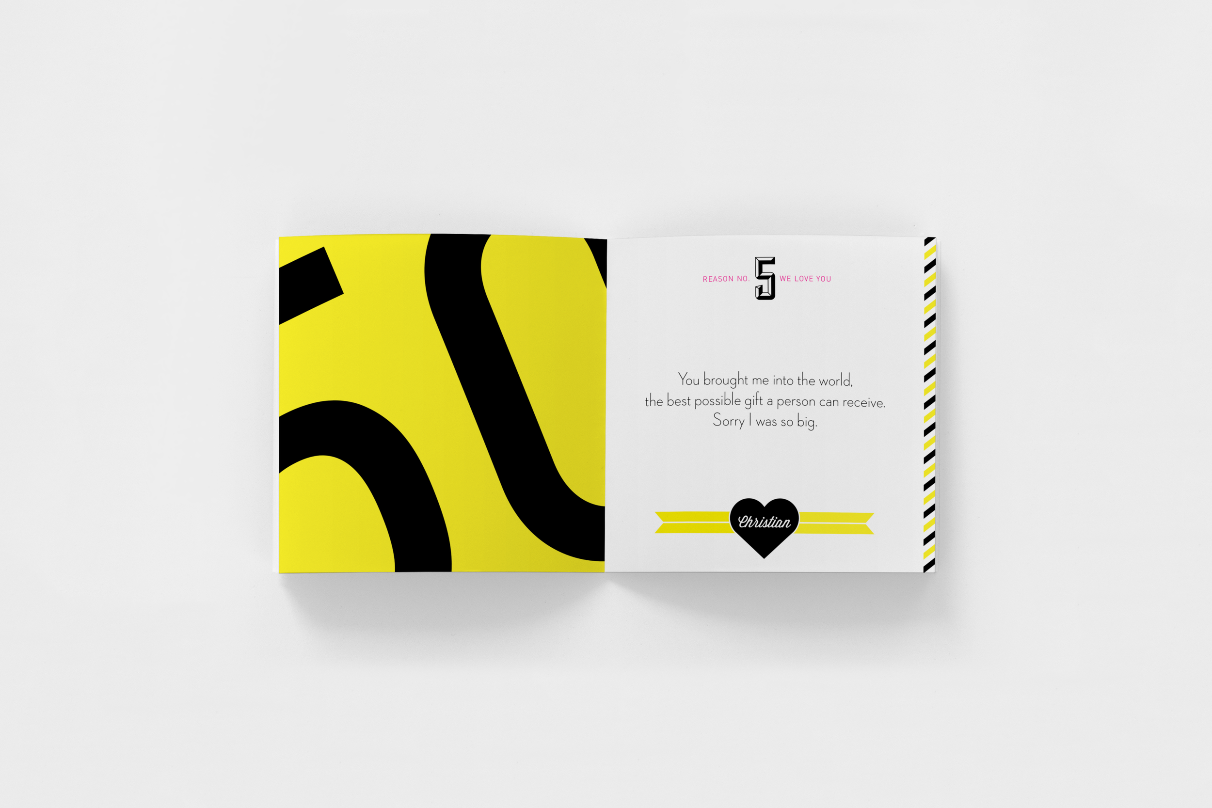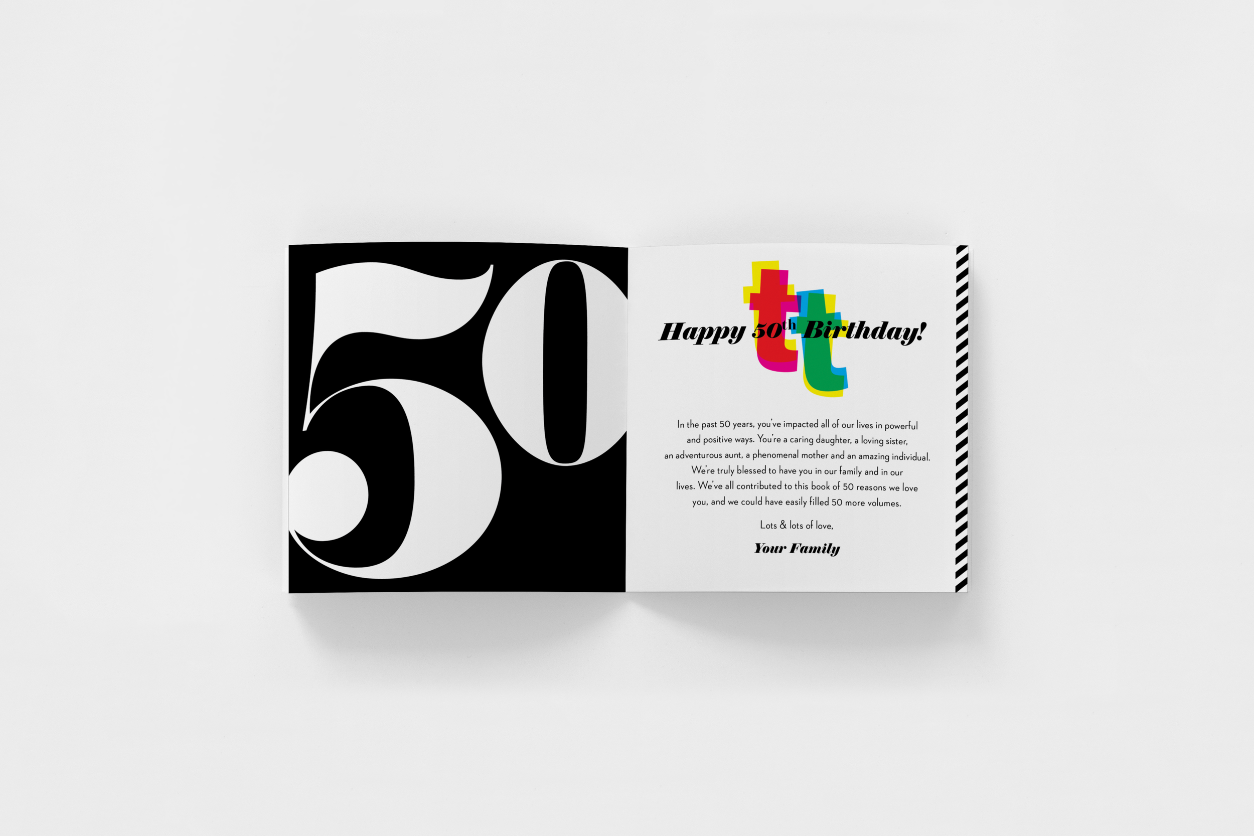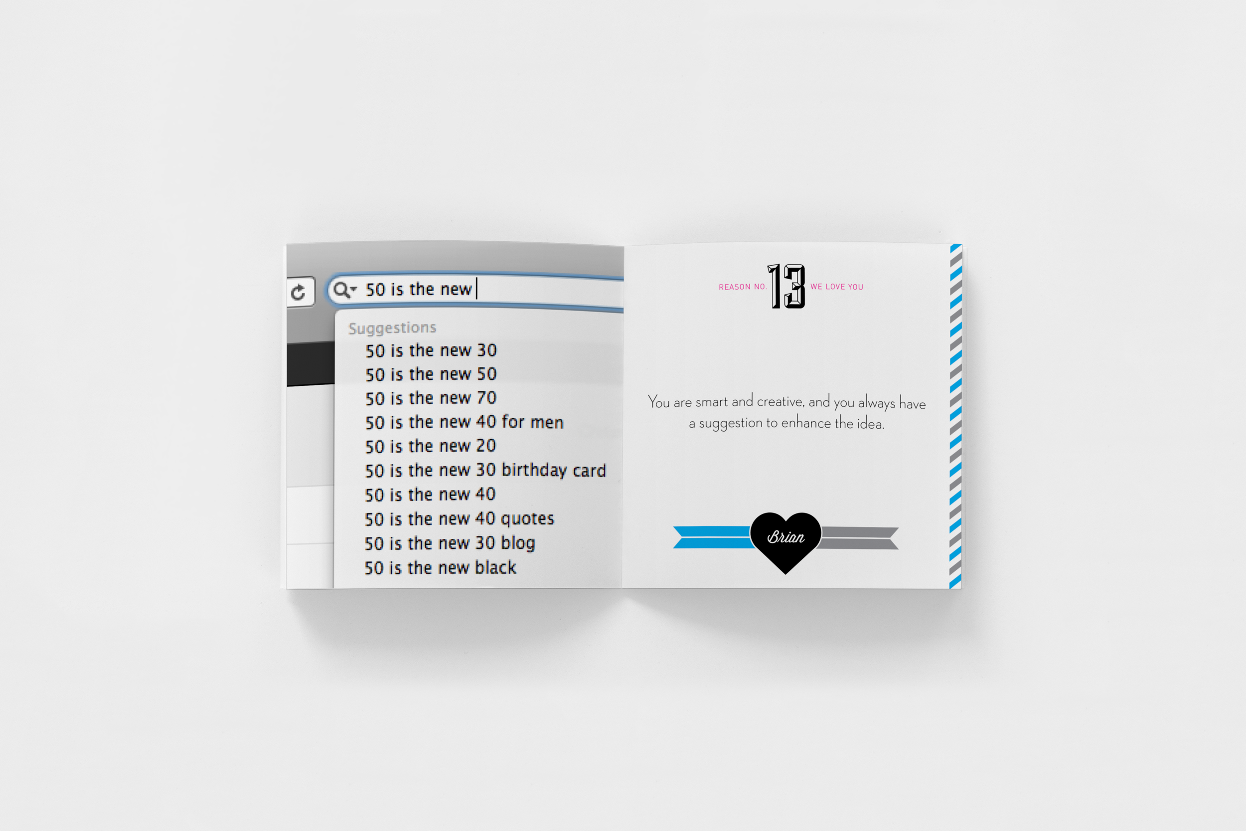 Lest you think that I only design for the money or the fame, I've included a project to tug at your heart-strings and demonstrate what a sympathetic young man I am. Behold, the booklet I designed for my Mother's 50th birthday, a collection of 50 reasons why she is loved and 50 typographic and visual interpretations of the number 50. Love you Mom!